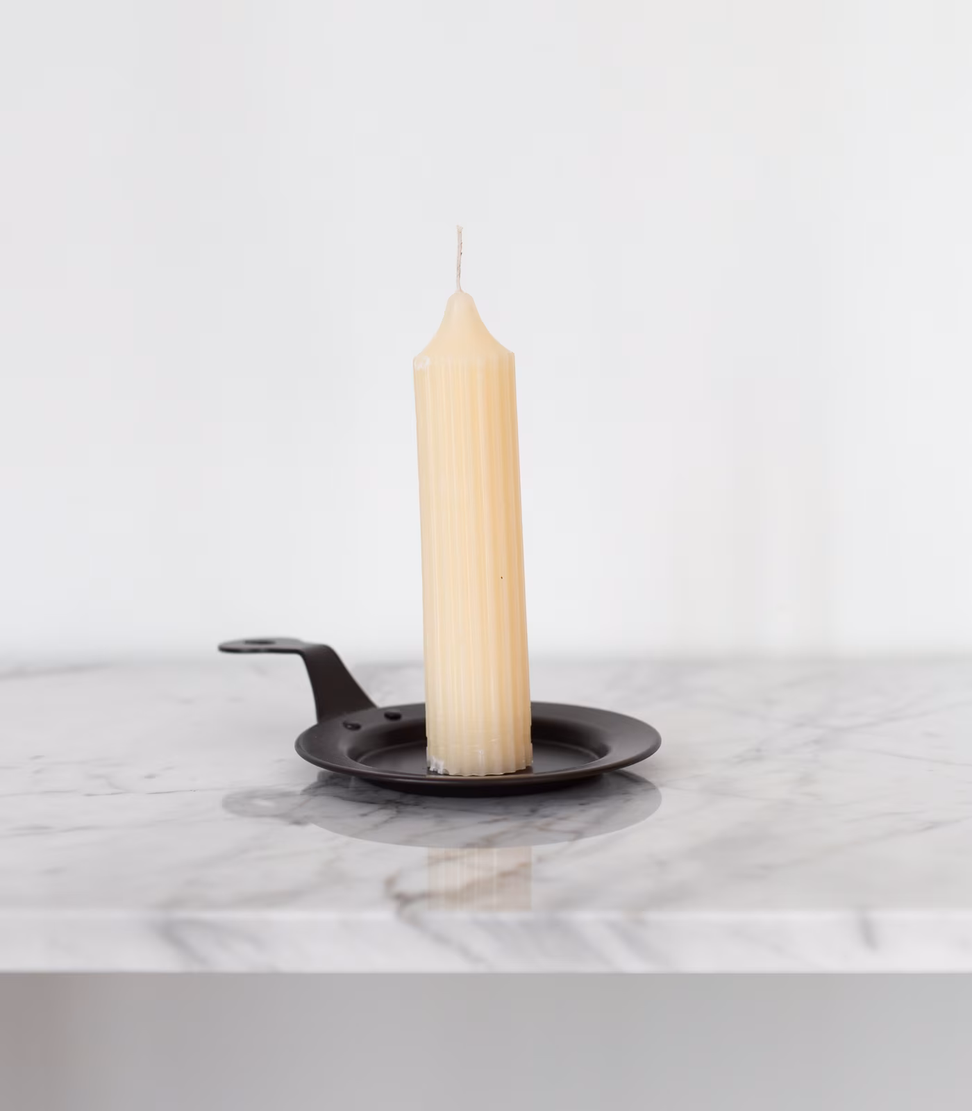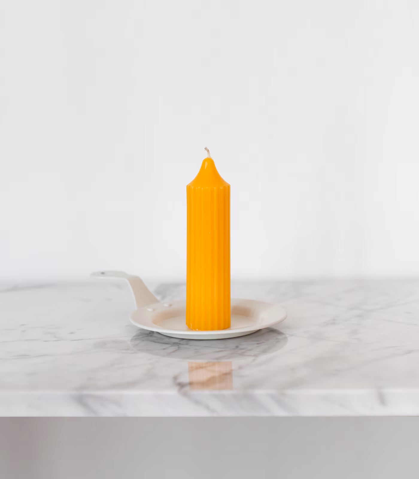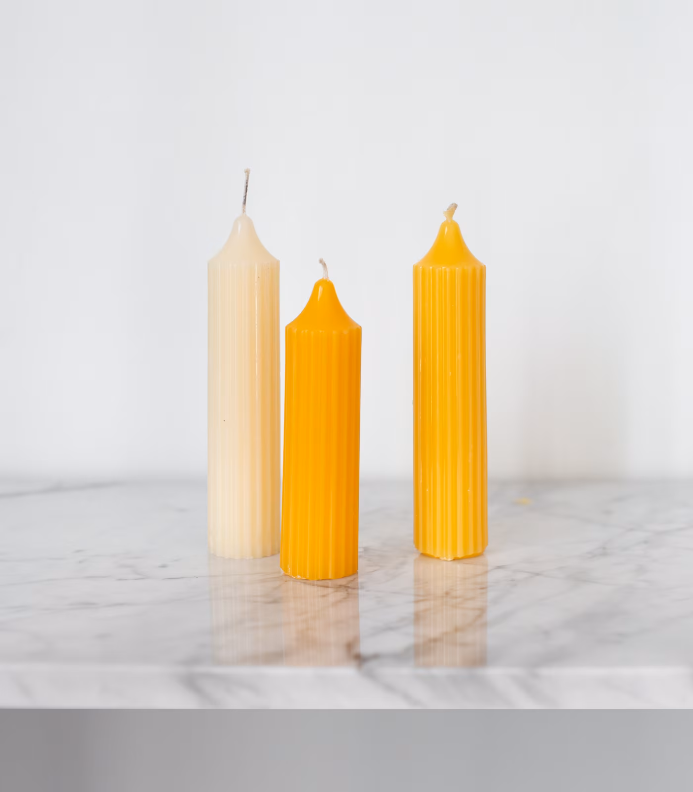 Sarı ve beyaz doğal balmumundan klasik şamdan mumu.
