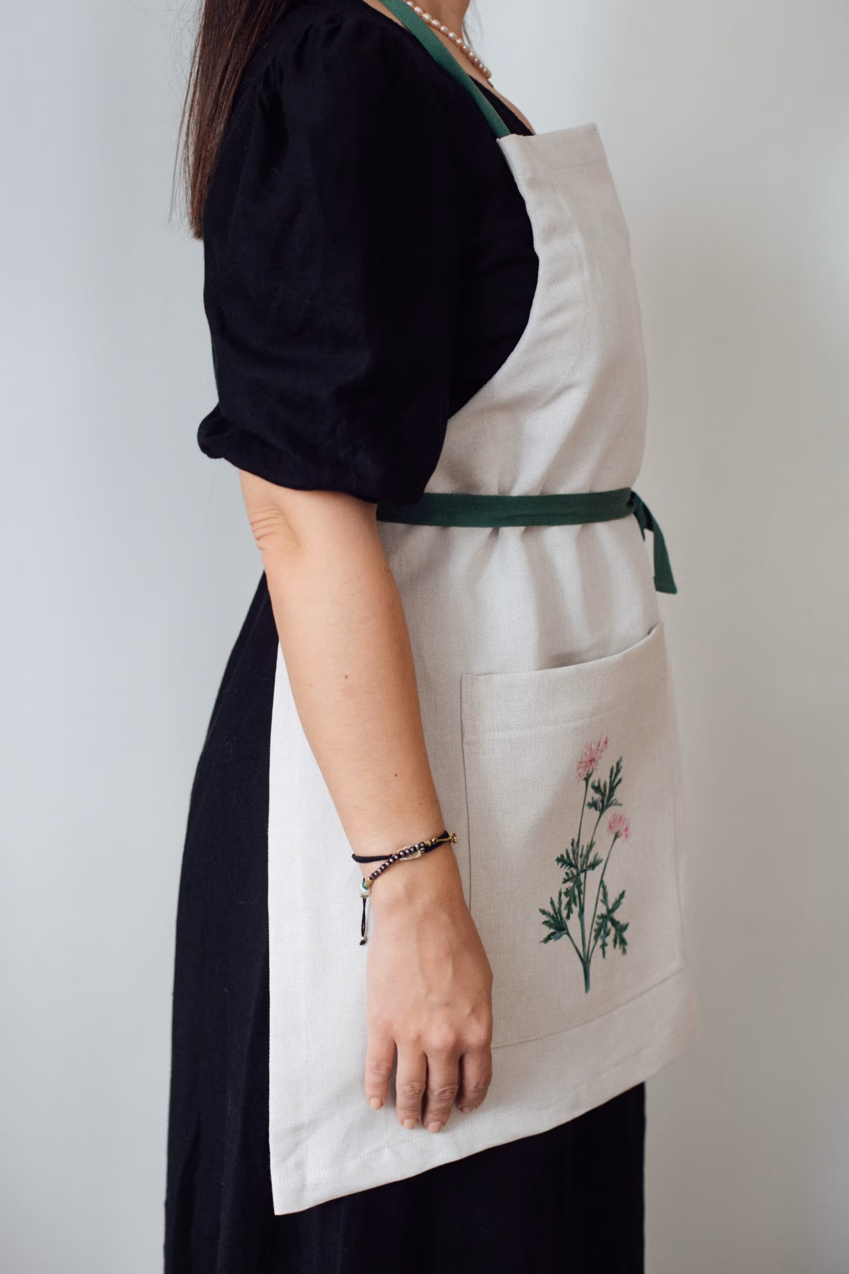 Yeşil askılı önlüklerimiz %70 pamuk ve %30 keten karışımı kumaş ile üretilmiştir. Mutfak işlerinde , resim-seramik gibi hobilerinizi gerçekleştirirken kullanabilirsiniz. Önlük ceplerinde canlı bitkileri model olarak kullanarak çizilmiş illüstrasyonların yer alıyor. Önlükler kumaş kumaş keseleri içinde gelmektedir. Beden: S -M-L beden giyenler için uygundur. İp askısı sayesinde bedeninize göre kolayca ayarlayabilirsiniz.
