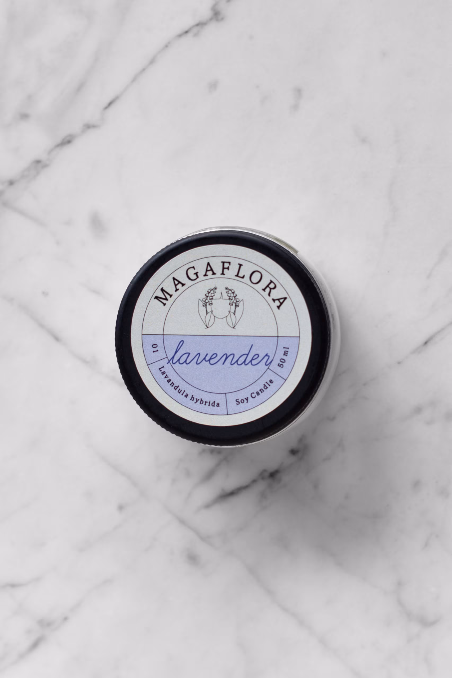 Mum dökülürken üst yüzeyi kuru lavanta çiçekleri ile süslenmiştir.
