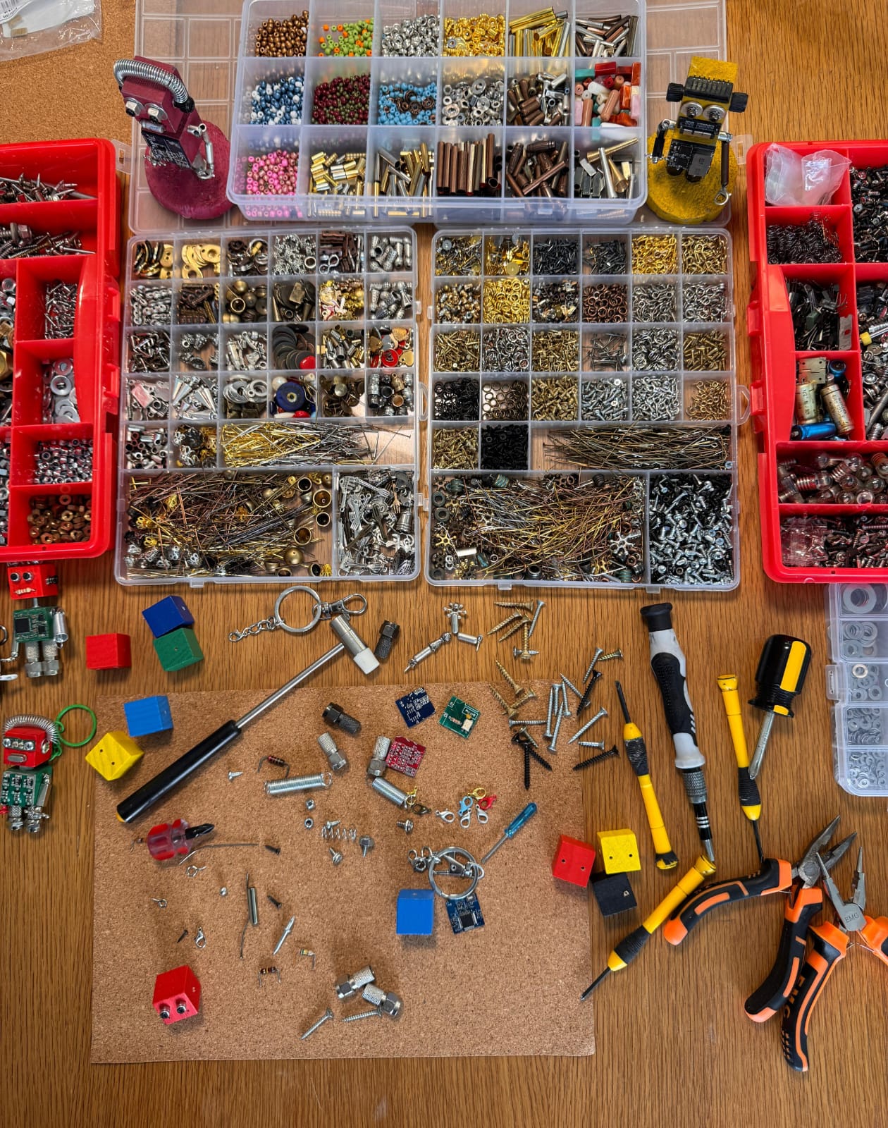 Vidalar, çarklar, yaylar, minik elektronik parçalar ve renkli detaylar hepsi senin yaratıcılığını bekliyor.