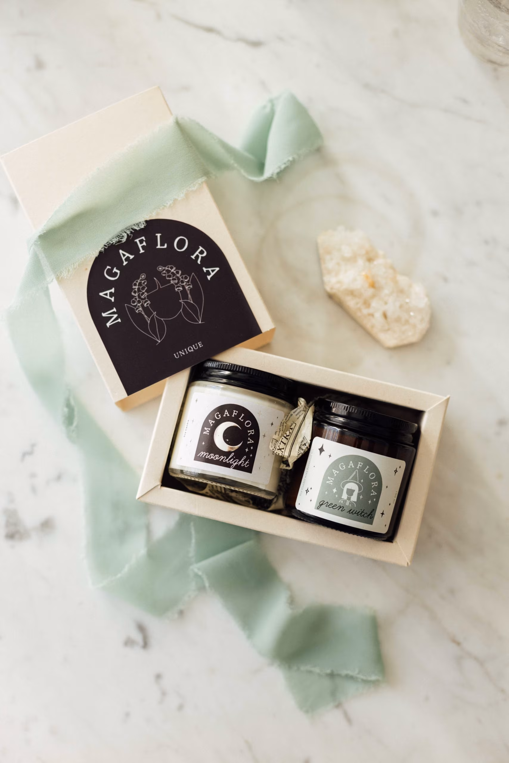 Ay döngülerini takip ederek yıl boyunca ritüellerini bilinçli ve düzenli bir şekilde sürdürmek isteyenler için hazırlanmış özel takvim setinin yanında dolunay ve yeniay gecelerine eşlik edecek ‘Moonlight’ ve ‘Green witch’ ritüel mumları birarada.